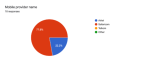 - Most people who participated in the survey use Safaricom as their mobile provider.